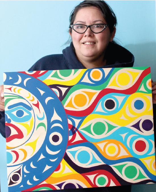 Hugon is studying the Coast Salish Style to connect with her roots and learn about her ancestors, she has worked very hard to earn spots for her permanent installations that she has made for Northern BC communities. Amanda has been living in Terrace since 1993, where she currently lives with her family in a small bungalow that sits parallel to the Skeena River. Amanda feels that art is truly meant to heal the soul. Follow Amanda’s artistic journey @raventacuara |